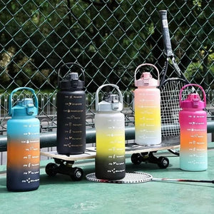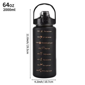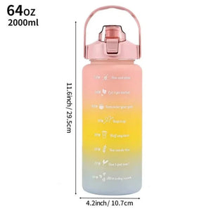 2L Outdoor Large Capacity Sport Water Bottle Creative Plastic Cup Outdoor Leakproof Straw Cup with Time Marker Bounce Cover