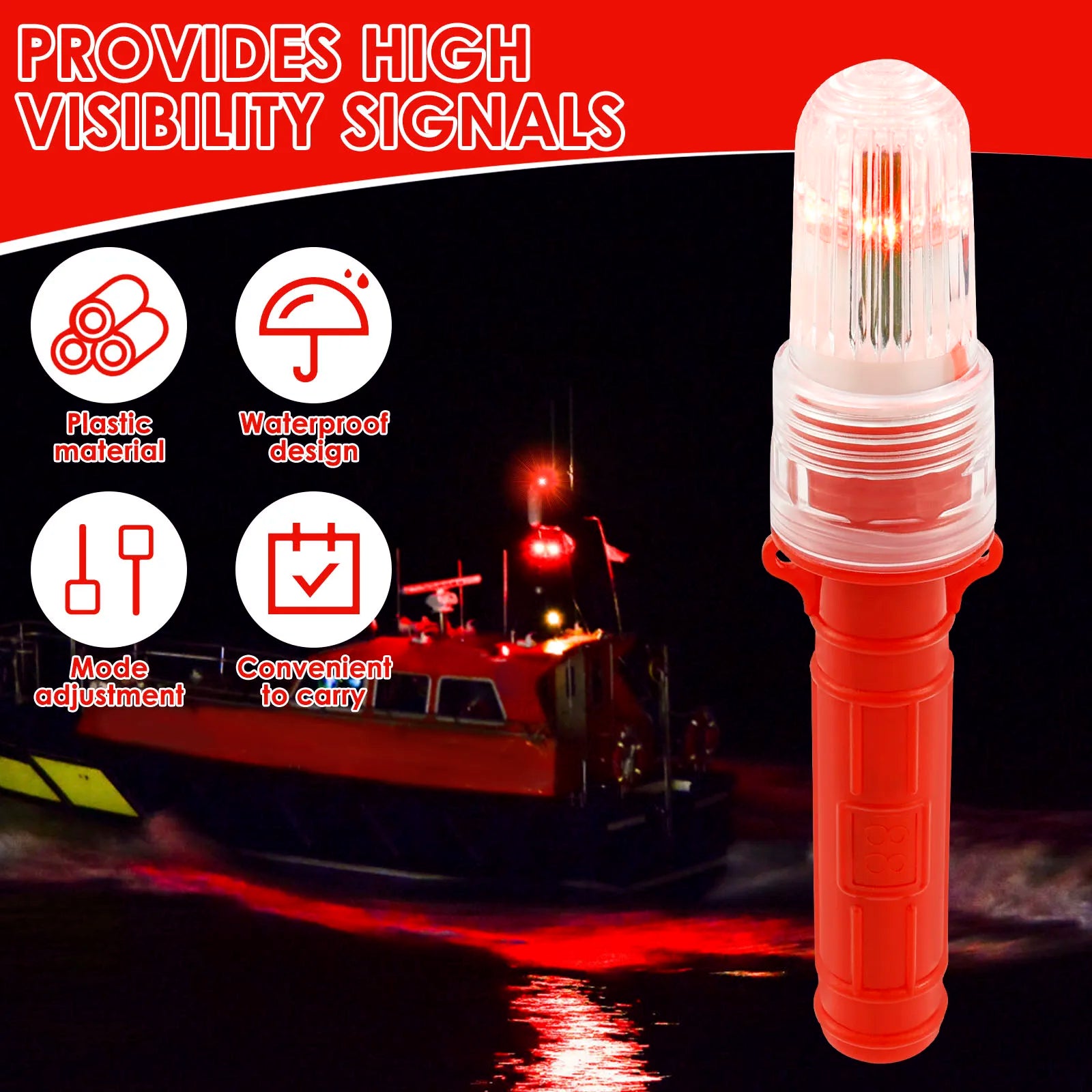 Multi Mode : These lights have adjustable signal modes ( steady , flash , SOS ) that adapt to changing conditions , from dense fog to low light rescue . Easily switch between settings to maximise visibility to helicopters , boats or nearby vessels , ensuring your distress signal is clear in any emergency