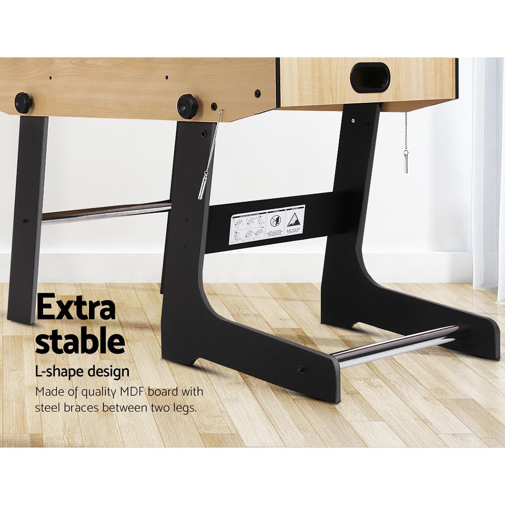 If you love soccer (or football), our Soccer Table promises to deliver hours of fun and excitement. The 4-foot table is made from MDF board with a strong and sturdy construction and features stable legs too. The ABS-moulded players are attached to chrome-finish steel rods for strength and durability. The anti-slip handles enable good player and ball control and ensures a comfortable feel. A score counter lets you keep score easily and you get two bonus balls too. Best of all, the table is foldable and easy to store after the games are done. Great for family bonding, party entertainment or after-work play, our soccer table is an absolute winner with everyone.