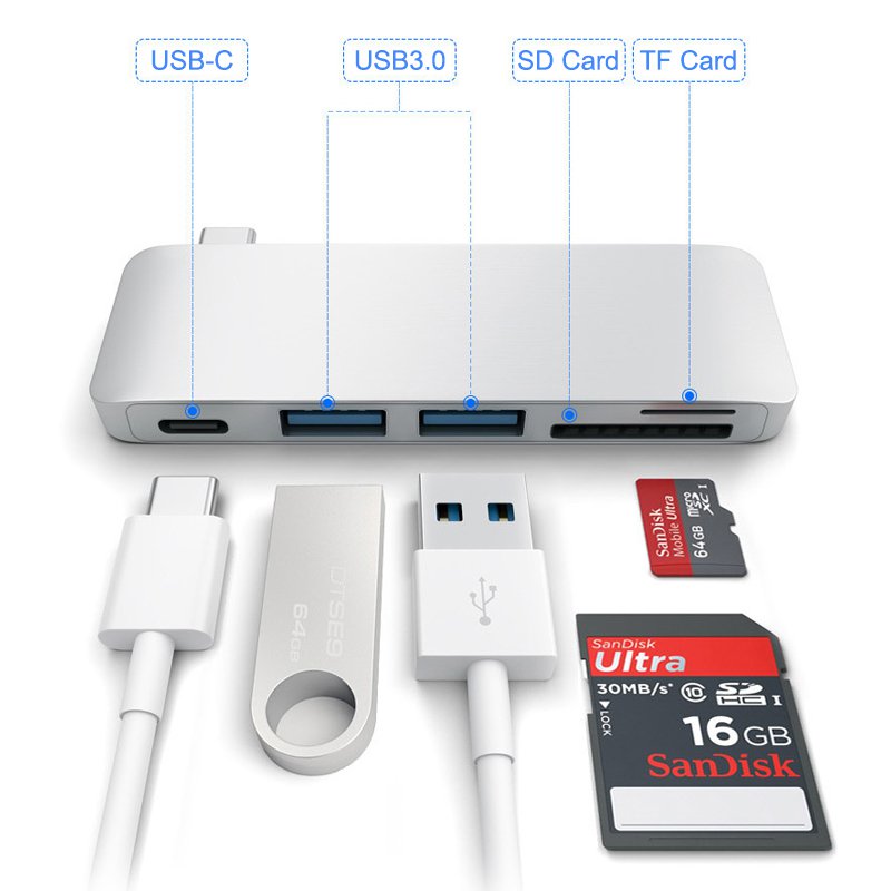 - Turns a single USB Type-C port into 5 ports: