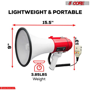 5Core Megaphone Bullhorn Speaker Pro 60W Bull Horn Non Rechargeable