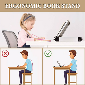 【Multi Heights & Angles to Relax 】 Adjustable Book Holder designed with different angles and heights allow promoting proper posture for better spinal health. You can adjust the angles & heights to find a comfortable position.Ergonomic book holder stand eliminates eyes, necks, shoulder and back fatigue or pain. Keep your Kids with a Better Posture when studying.Meanwhile increasing your concentration and reading hours improve learning efficiency.