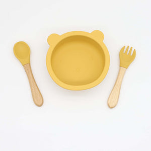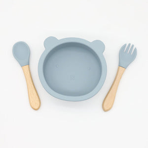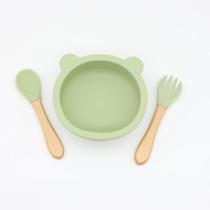 Baby Bear Shape Food Training Silicone Bowl With Spoon Tableware