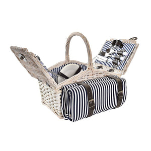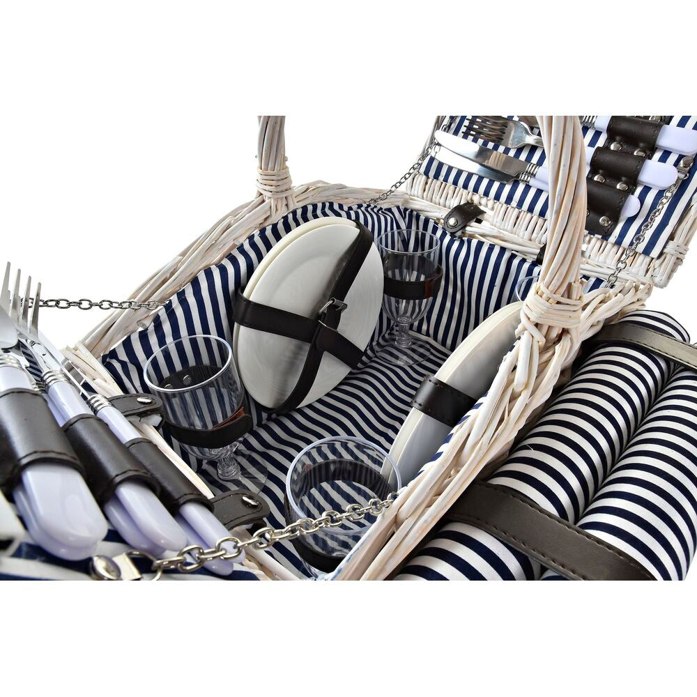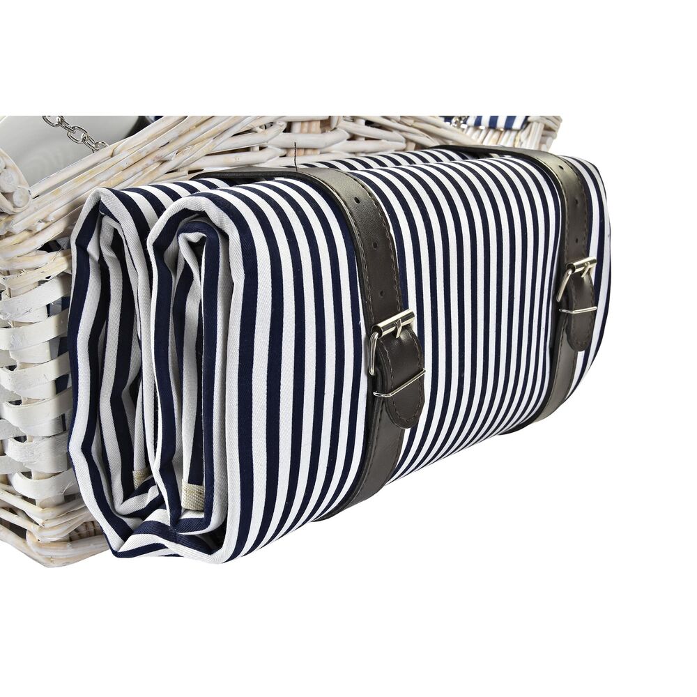 Basket DKD Home Decor wicker Picnic Blue Polyester White (40 x 40 x 42