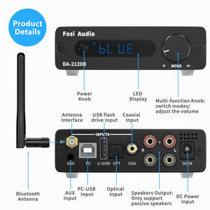 Input: Bluetooth + USB + coaxial + optical + 3.5mm aux + USB flash disk