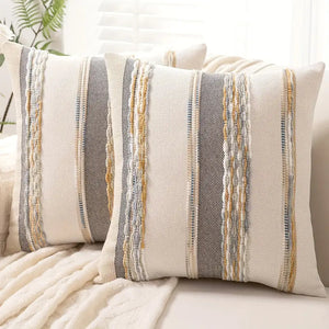 Boho Striped Chenille Throw Pillowcases Cozy up your living space with our Boho Striped Chenille Throw Pillowcases. Handmade with soft, luxurious chenille fabric, these pillowcases provide the perfect balance of comfort and style. Combine with our other Boho Striped collection pieces for a complete, bohemian look that will elevate any room in your home.