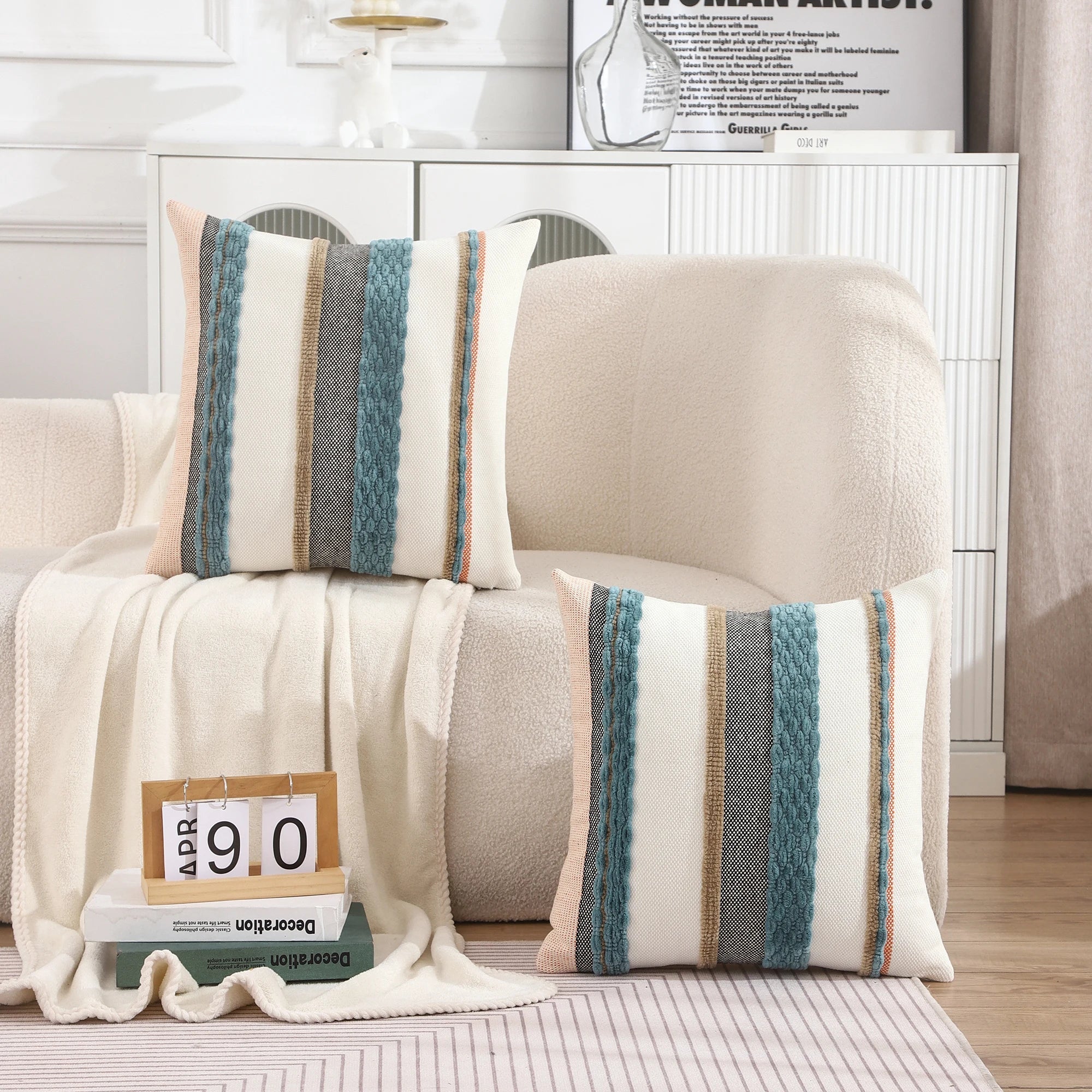 Boho Striped Chenille Throw Pillowcases Square