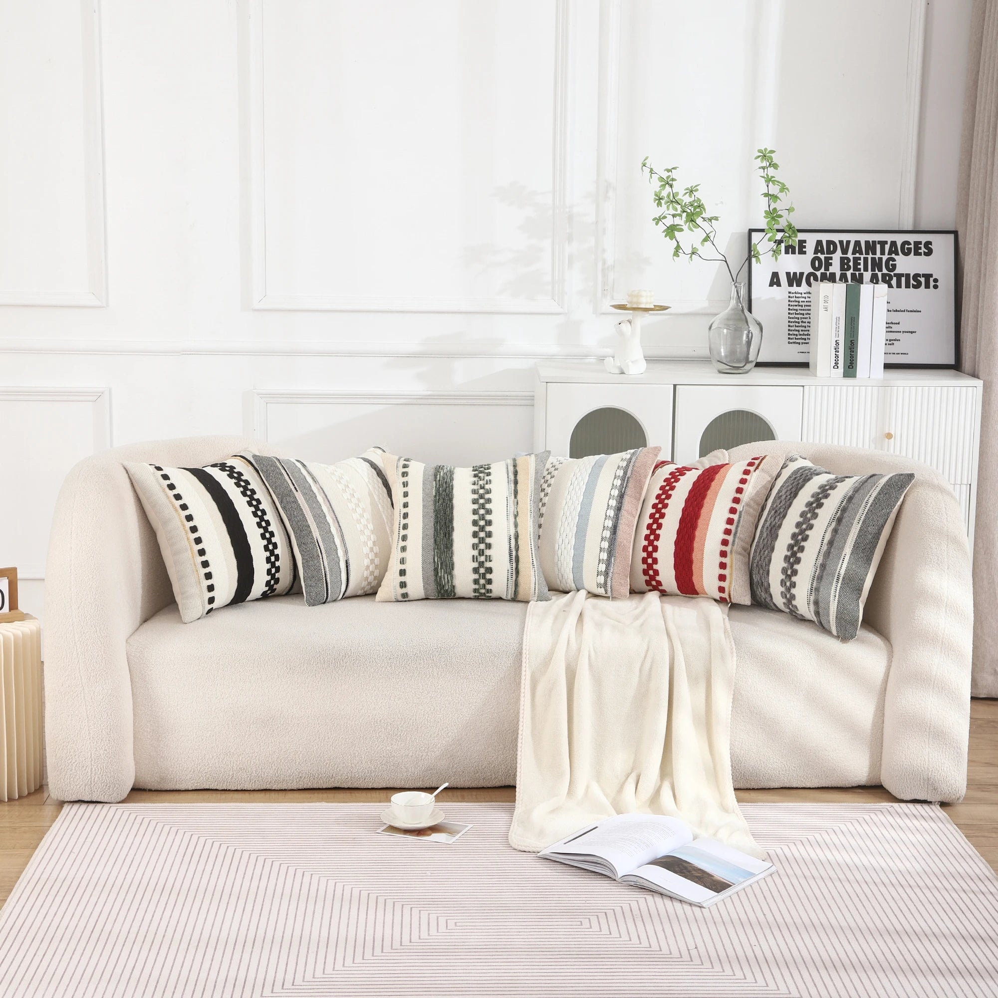 Boho Striped Chenille Throw Pillowcases Cozy up your living space with our Boho Striped Chenille Throw Pillowcases. Handmade with soft, luxurious chenille fabric, these pillowcases provide the perfect balance of comfort and style. Combine with our other Boho Striped collection pieces for a complete, bohemian look that will elevate any room in your home.