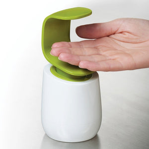 - Just fill the dispenser with soap or sanitizer, and then you can operate it with the back of one hand.