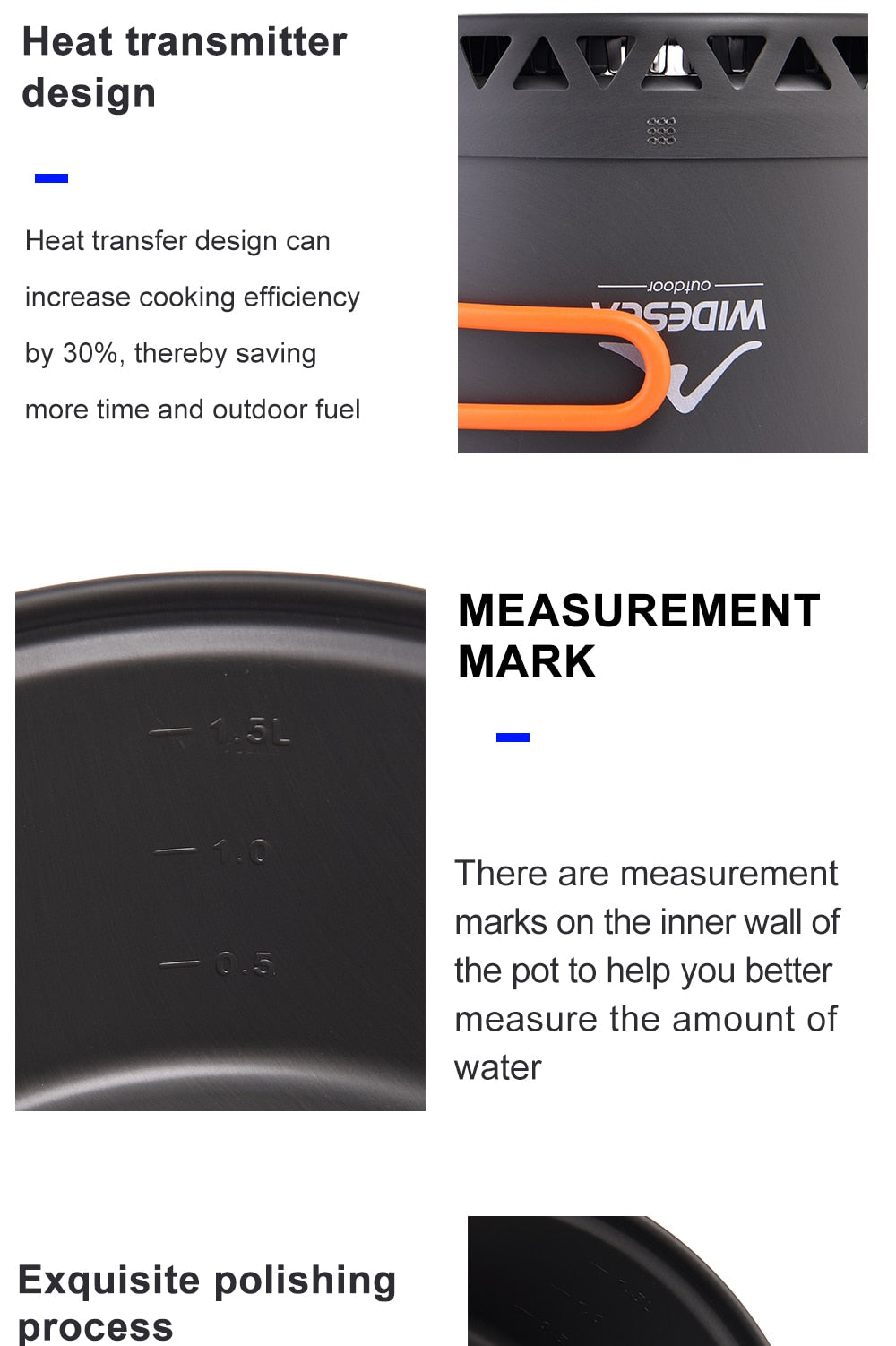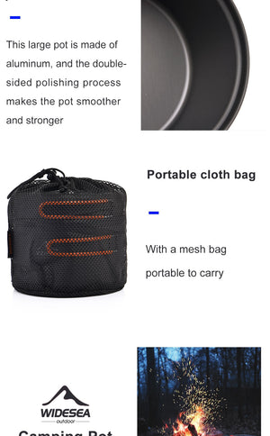 Camping Cookware 2.3L Set Pots Outdoor Cooking Heat Cooker Travel Tableware Bowler Tourist Kitchen Pot Utensil Equipment