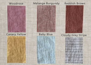 As well as each roll of linen may have a slightly different shade. The shade depends on the linen growing conditions, weather, and humidity. Therefore, our recommendation is to order all the desired items at once.
