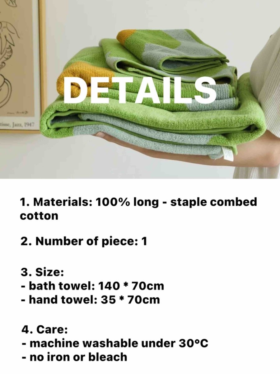 Green Towel - 35 * 75cm, Yellow Towel - 35 * 75cm, Yellow Bath Towel - 140 * 70cm, Green Bath Towel - 140 * 70cm |