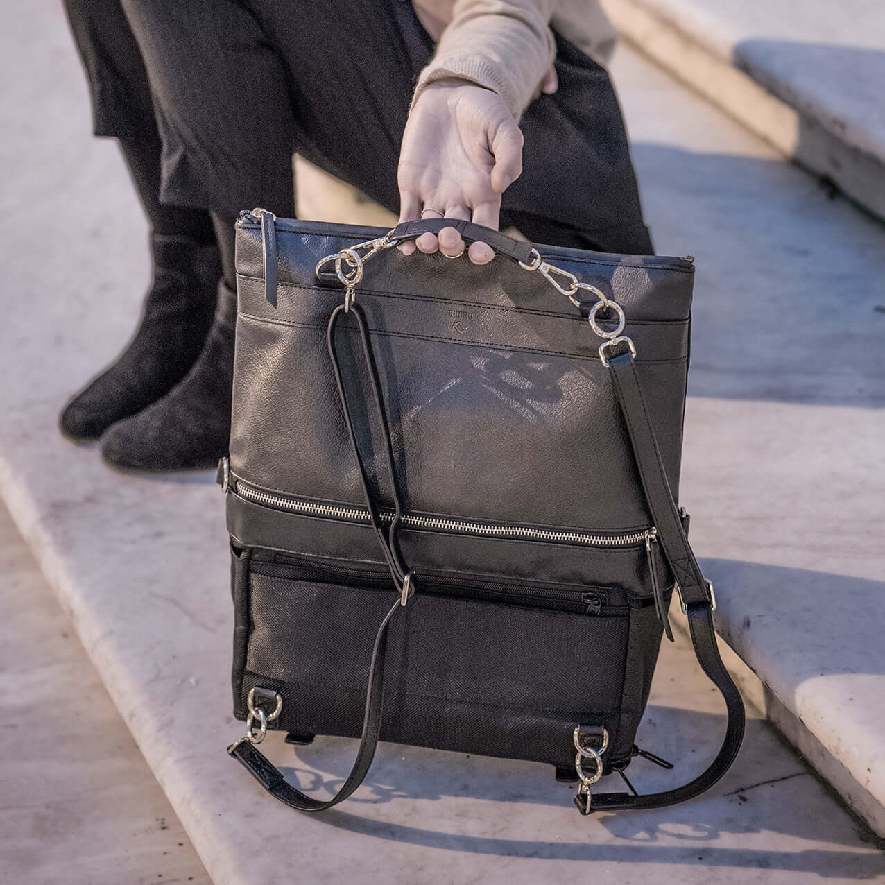 Elegant, practical, sustainable. That's DAKOTA - the fully convertible backpack purse. The black version of the DAKOTA bag is perfect for all seasons and occasions, be it work, travel or leisure.