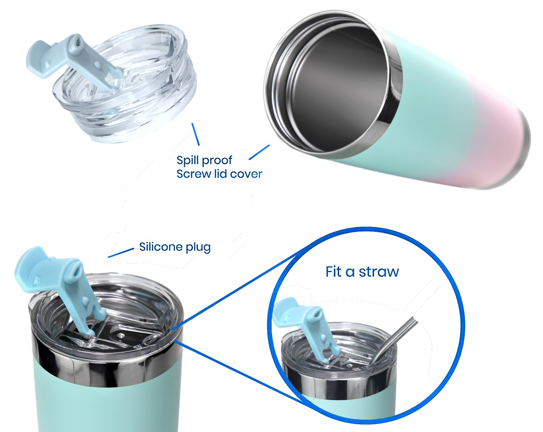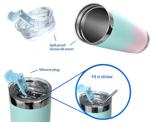 - VACUUM INSULATION: Our vacuum thermos insulated tumbler with splash proof lid keeps it sweat-free from the outside. It is double walled, with copper coat liner or triple insulated will retain the drink temperate for long hours.