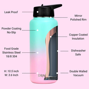 DRINCO® 32oz Stainless Steel Water Bottle (3 lids) - Macaron
