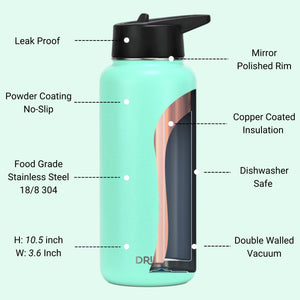DRINCO® 32oz Stainless Steel Water Bottle (3 lids) - Teal