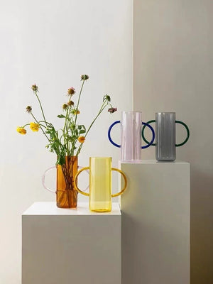 Dual-handle Dopamine Glass Flower Vase - Whimsical Table Setting