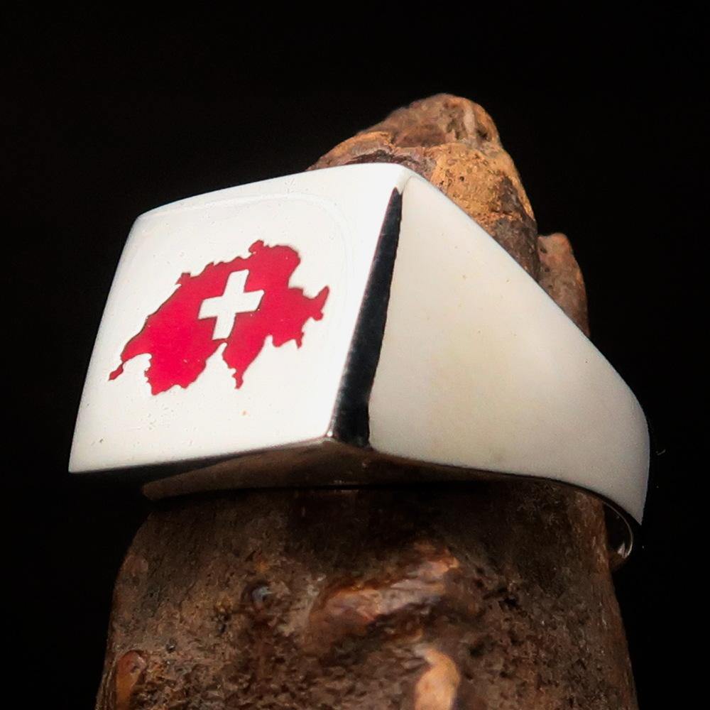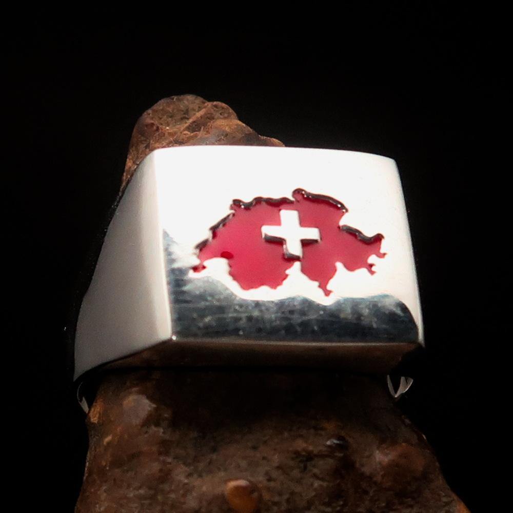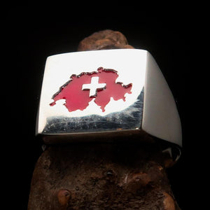 Excellent crafted Men's Swiss Flag Ring Switzerland - Sterling Silver