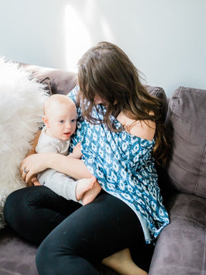 The patent pending Mina & Vine Nursing Scarf provides style and versatility before, during and after nursing. The first and only of its kind to be designed with a magnetic closure and smart fabric technology, going from nursing cover to stylish accessory is a breeze. As an added bonus the scarf can also be used as a cover for a carseat, carrier, shopping cart or as a blanket.