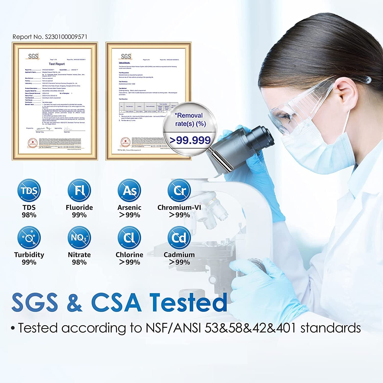- Waterdrop reverse osmosis system is certified against NSF/ANSI 58 for TDS reduction and NSF/ANSI 372 certified for lead-free material.
