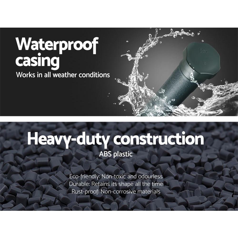 Weatherproof and eco-friendly with its ABS plastic construction, our Gardeon Snake Repeller keeps out not only snakes but also other garden pests such as moles, rats and mice safely and humanely. It does so by emitting a sonic pulse and vibration through the ground to deter their presence. While each snake repeller has an effective range of up to 40m in diameter, you can extend that coverage through the use of multiple repellers to provide a formidable barrier. They are also portable to bring along to camping trips for peace of mind. Suitable for your garden, yard, farm and orchard, the snake repeller works 24/7 and up to six months with good quality batteries (not included).