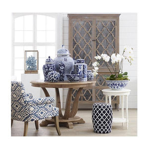 Blue and white remains the darling colour combination for designers and decorators, this pretty high fired ceramic ginger jar has a charming blue & white flower pattern.