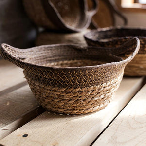 Khaki Brown Straw Basket with Handles