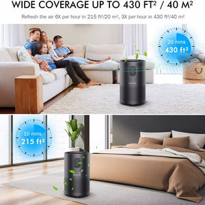 - HIGH EFFICIENCY FOR LARGE ROOM: KOIOS True HEPA air purifier for home covers an area of up to 430ft² /40m². 3X air changes per hour in 430ft² and 6X air changes per hour in 215ft²