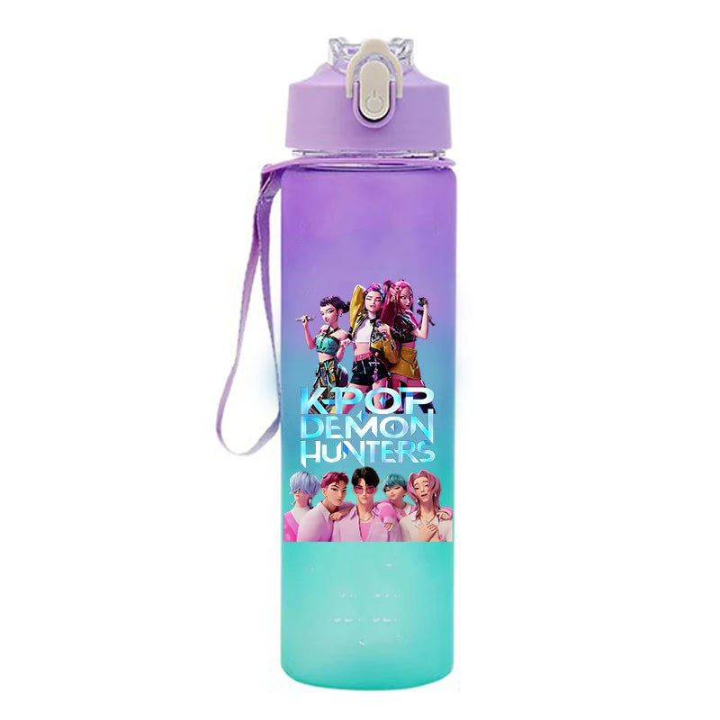 Kpop Demon Hunter Water Bottle with Straw 750ml Kids Summer Anime Cup