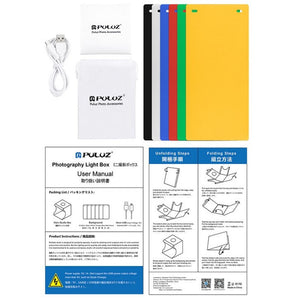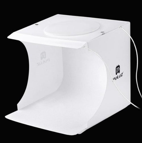 characteristics 100% Brand new! all-in-one portable studio, easy to use & take apart. the photo lightbox is designed for small items of photography enthusiasts, artisans, artists, students and other online sellers, professionals and product advertising clients. studio light box allows quick and easy shooting of small products such as jewelry, accessories, toys, watches, appliances and other items. set up your own photography studio anywhere in a matter of minutes, you can unfold this has taken light studio box and put it on any surface to get the perfect setting for small business photography articles, take pictures for them. portable snap button snap frame design, easier to install and carry, built-in led light, medium light supply and prevents shadows and reflections on your photos. with 6 EVA bottoms (Black, white, orange, red, green, blue), and internal LED light panel and USB cable (you should prepare a USB charger, power bank, or USB hub to power it ). Mini and light weight, just like a book when folded, easy to take anywhere.   specifications ShellMaterial: PVC Scenarios Material: EVA, non-woven Shell Color: White Color temperature: white Fresh, 2 * 5600 K Light source: 2 LED panels with 2 * 20 pcs beads on it bright: About 2 * 550 lumens Power Source: USB 5 V port: Micro USB, universal Android device port Rated Power: 2 * 3.5 W Size of the tent: About 24x23x22 cm / 9.4x9x8.6 "(unfolded) 23x23x1.5 cm / 9x9x0.59 "(folded)   attention please wait 3-5mm size deviations due to manual measurement.   Package Included 1 x Main Studio Box (with 2 LED panels) 1 x Round PVC Plate 1 x Soft Bag 6 x EVA Scenarios (6 different colors) 1 x Micro USB Cable 1 x User Manual