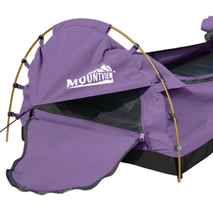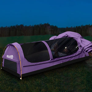 Explore more for outdoor living with our Mountview Camping Swag. 400GSM water-repellent rip stop canvas cover, 500gsm PVC flooring and an extra 10cm high edge, it is suitable for each season. Fully enclosed for privacy with zipped openings for fresh air anytime. Mesh panels allow you to have excellent sky vision and keep insects out. High density mattress with 6cm thickness designs for better sleep on any surface. Thick aluminium support poles hold up the entire tent firmly. In addition, you will get inflatable pillows, pegs, guy ropes, carry bag and all the extras that make your camping experience unforgettable.