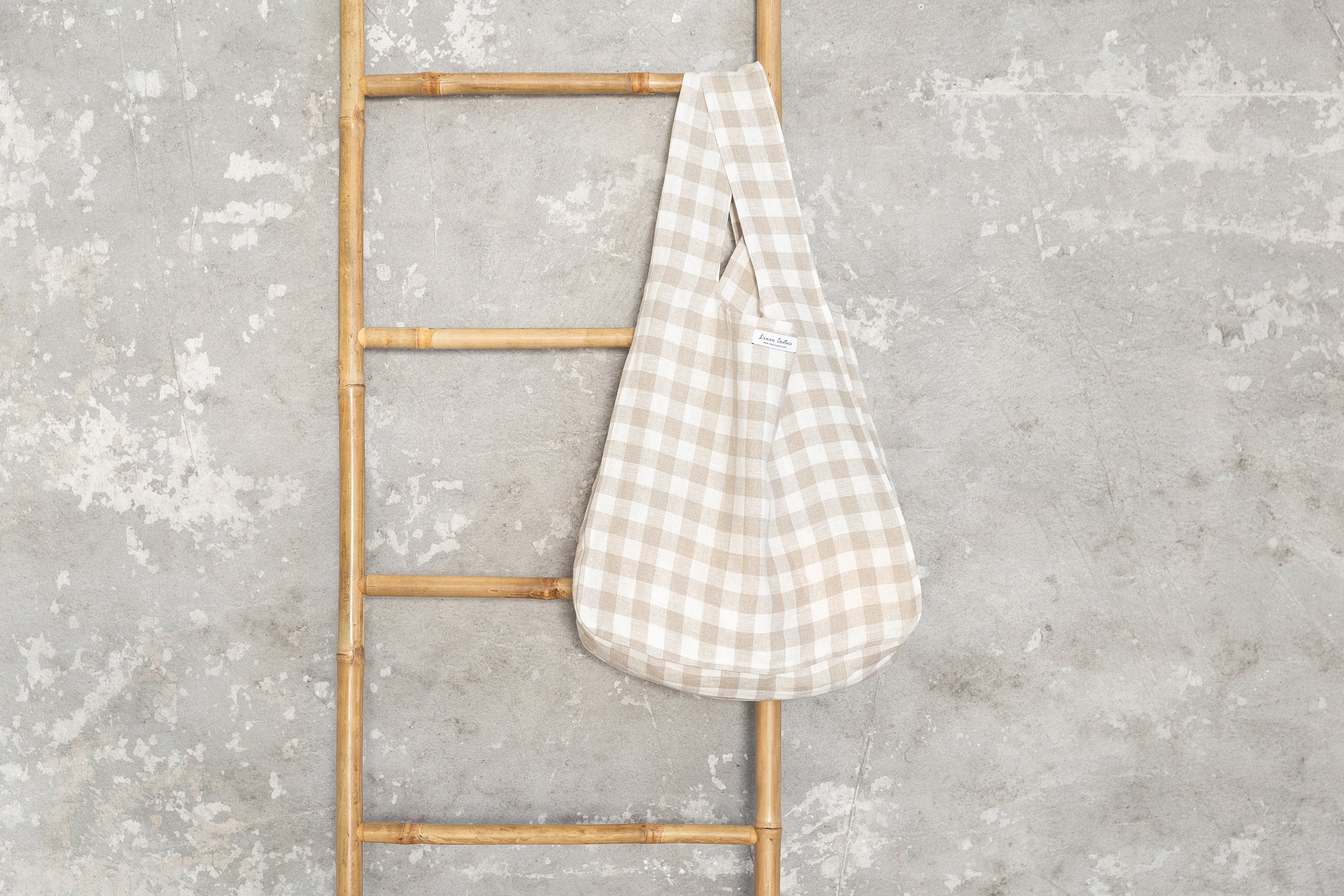 Natural and White check linen tote bag with inside pocket