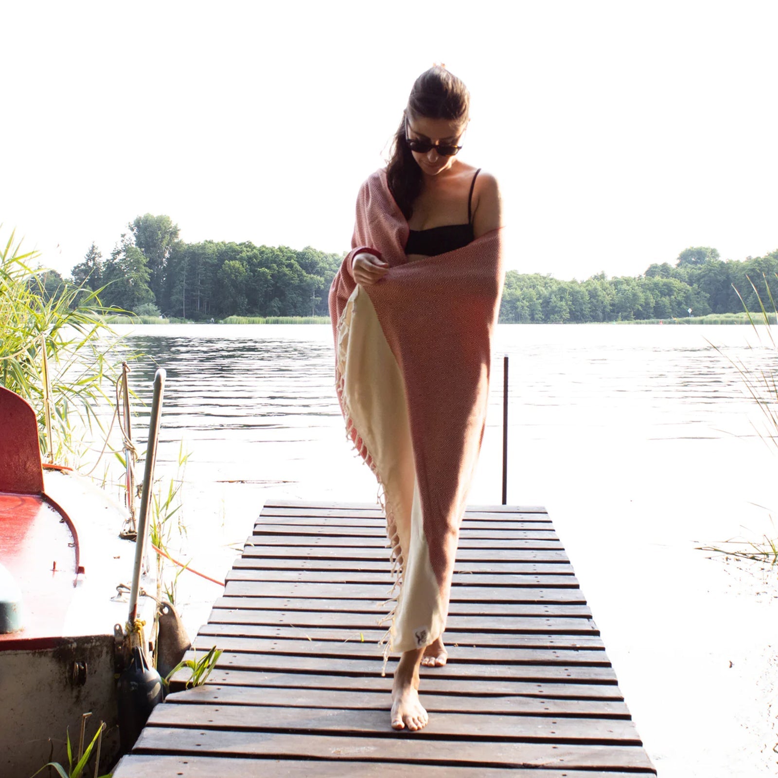 We weave our towels sustainably in small batches. We believe in buying less and using more. Our towels are hypoallergenic, made of all-natural fibers. They use 35% less energy than a standard towel during washing and drying. They release their beauty once laundered and they become softer and more absorbent with every wash.