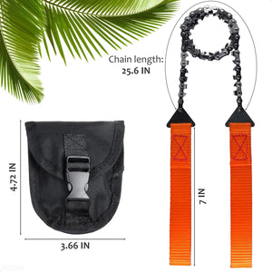 High-Quality Foldable Saw: This 25-inch survival hand saw excluding the handle is made of high-strength super heat-treated carbon steel with super-strong and durable nylon belt. This portable chain saws for trees with rope is perfect for anyone cutting hard wood.