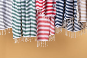 One of our best sellers, these striped TURCOs has a very tight-knitted structure, yet gives a soft feeling. We have 7 different colours of these striped TURCOs. They are highly absorbent. A bit thicker than the Beach Boys yet they keep almost the same space in your bag.
