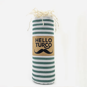 GreenĀ striped, medium-weight TURCO towel. Perfect for your sauna and beach trips.