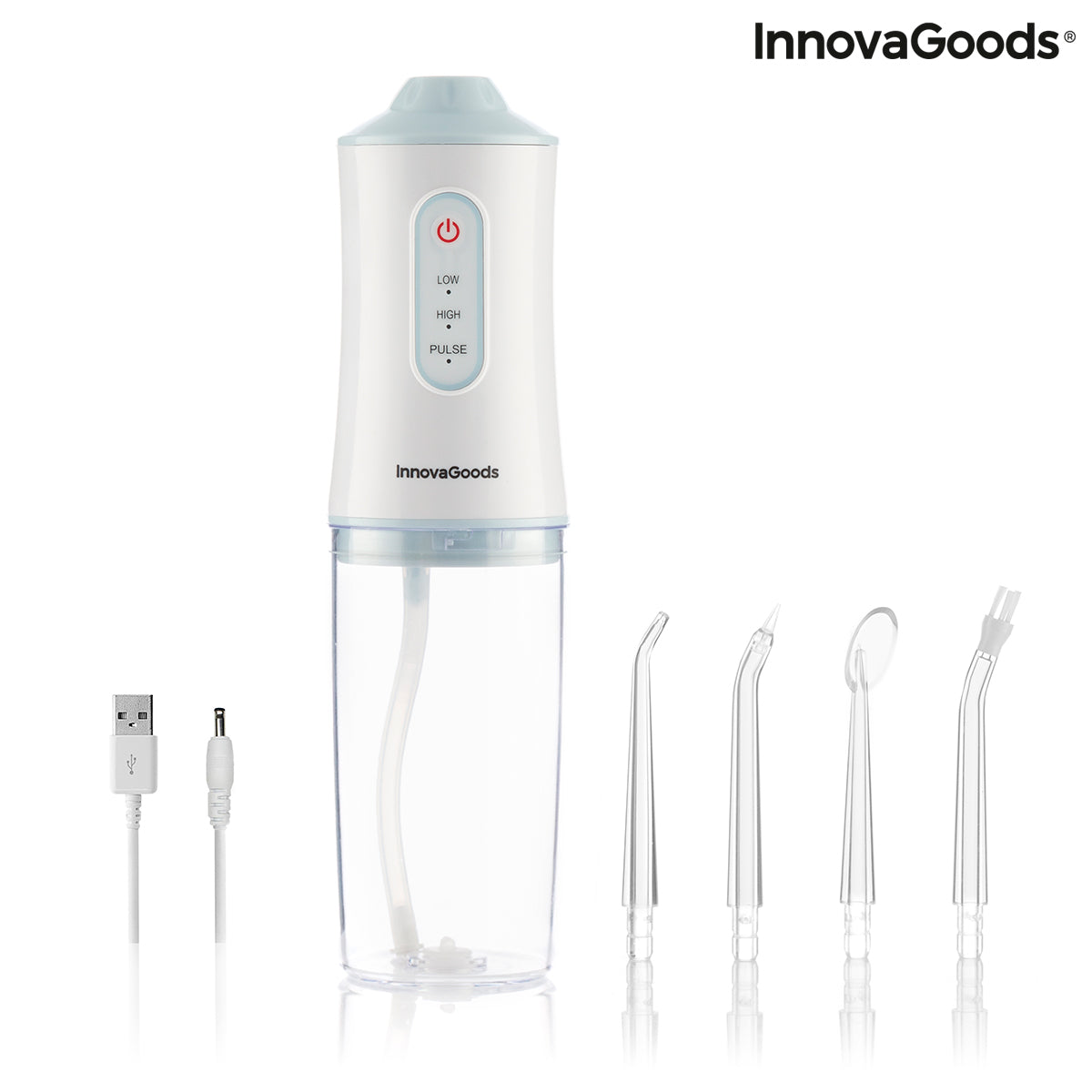 The Denter InnovaGoods portable rechargeable oral irrigator has everything you need to achieve a thorough cleaning of your teeth and gums, removing all types of dirt and residue. This oral irrigator provides a refreshing sensation of oral cleanliness. It features 3 modes of use and includes 4 heads for a professional result. Ideal for maintaining oral health and performing a thorough dental cleaning.