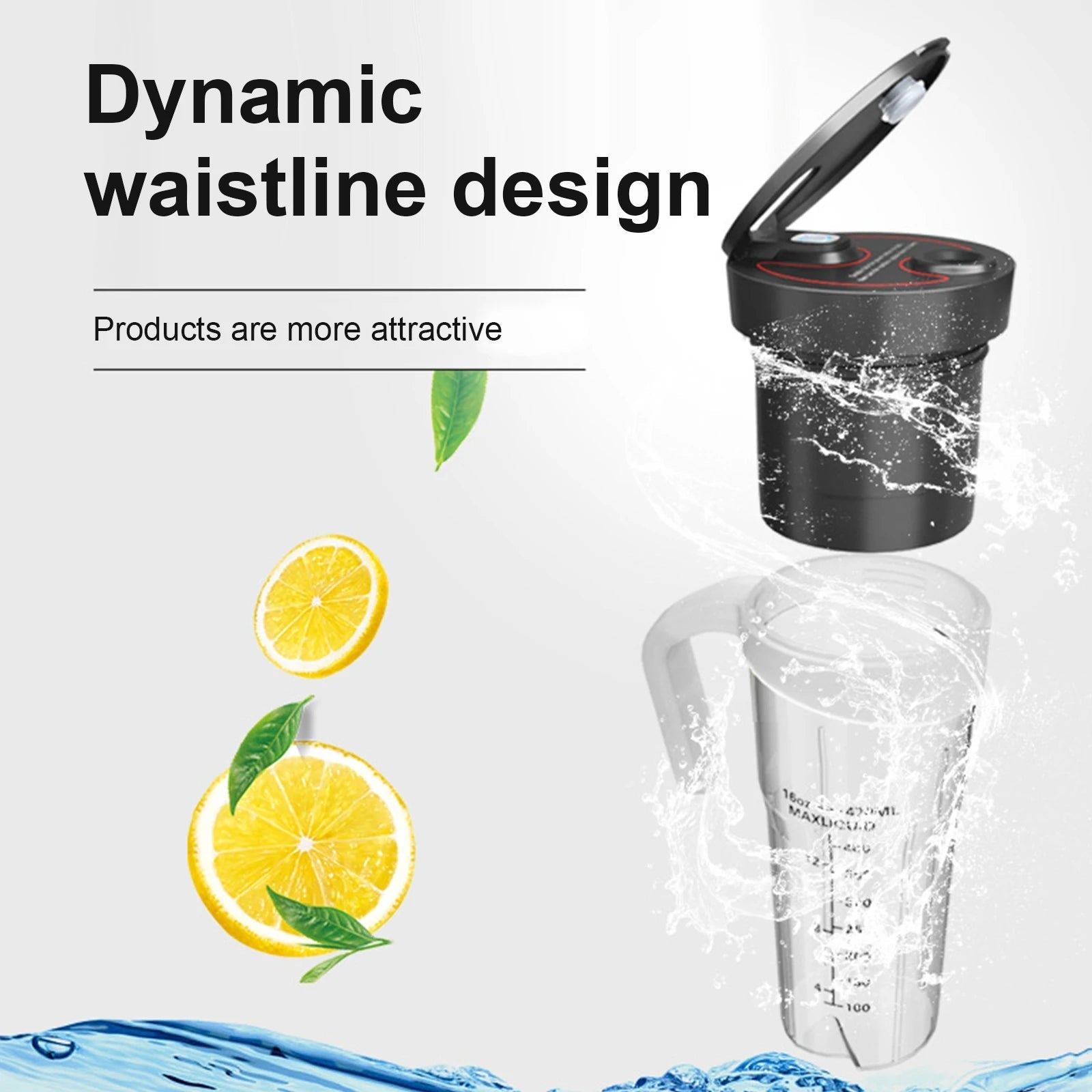 3.【Portable & Perfect Capacity】With a large capacity of 470ml, this juice mixer has enough space to put fruits, vegetables and ice cubes in it.