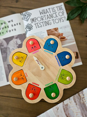 Additionally, the puzzle supports the development of colour recognition. Each emotion is paired with a distinct colour, helping children make connections between colours and feelings. This provides a fun, interactive way to practice colour identification while also reinforcing emotional concepts. As children rotate the pieces to match the current emotion they are experiencing, they also practice fine motor skills and problem-solving as they fit the pieces back into place.