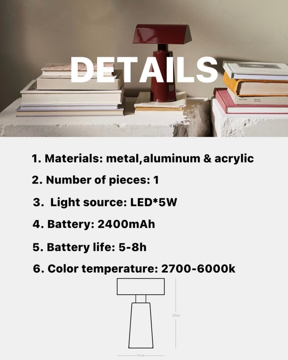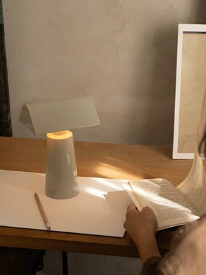 Features a rounded base and a long, pyramid-shaped top, this retro nordic cordless table lamp is a contemporary take on the classic banker's lamp, blending modern functionality with timeless aesthetics. Equipped with a built-in battery and emitting a soft, diffused light, this vintage-inspired portable LED desk lamp is a practical solution to the increasingly blurred boundaries between work and home.