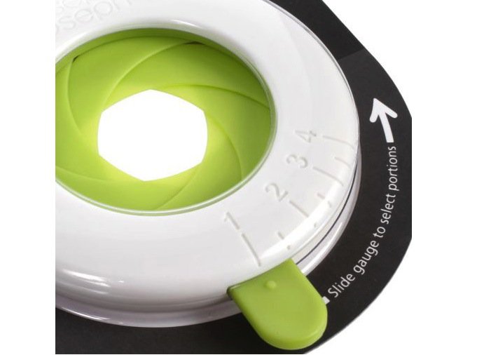 - Simply use the lever to open and close the adjustable aperture, allowing you to control the portion sizes for one to four servings.