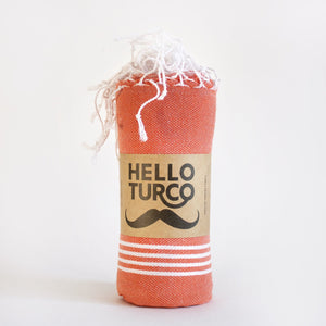 Coral colour, tight-knitted, light-weight TURCO towel. Perfect for your beach, sauna and gym trips š