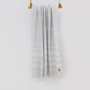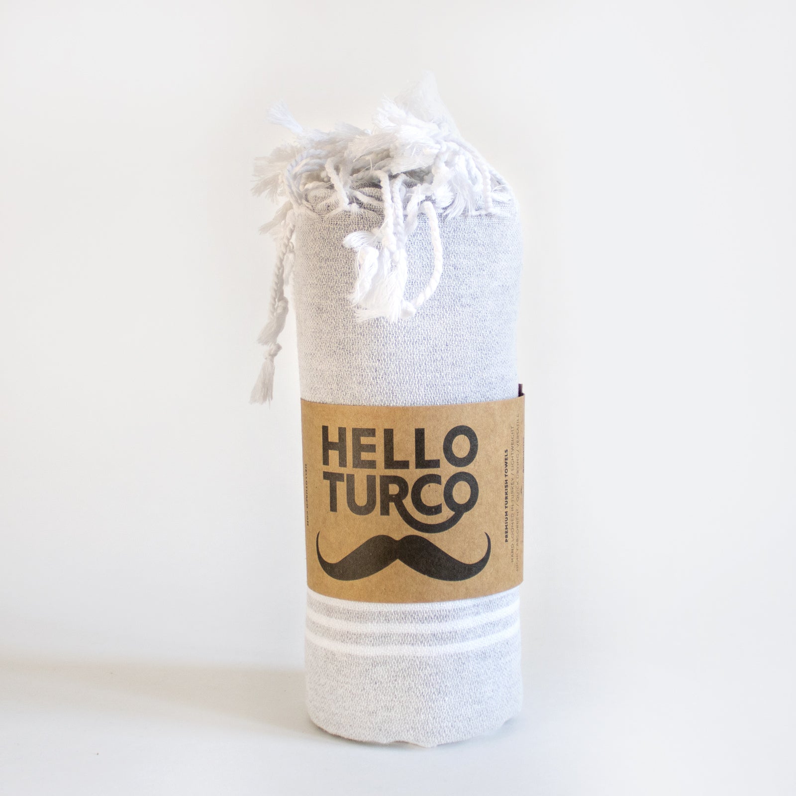 Light gray, tight-knitted, light-weight TURCO towel. Perfect for your beach, sauna and gym trips š