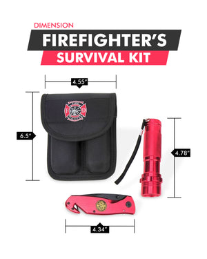 Fire Engine Red Firefighter Knife and Flashlight Combo Set by BarTech Pro This fully functional Firefighter knife and flashlight combo pack with heavy-duty nylon case is perfect for everyday use or for display. Each set is packed in a crush resistant box. The flashlight is safely wrapped in bubble paper for protection and the knife is wrapped in cellophane for protection against scratching. We now offer custom laser engraving to both the flashlight and knife for only $5.00. This is a unique way to personalize this knife and flashlight set making it great for gift-giving. Firefighter Flashlight: The flashlight is fire-engine red! The flashlight uses 3 "AAA" batteries (not included) and has 14 ultra-bright LED lights that last up to 20 years! The flashlight has a handy lanyard for easy transport. The push-button on/off switch is located on the front of the flashlight and is tested for durability. The flashlight is 4-7/8" long and about 1-1/4" in diameter. Flashlight is made from high-quality aluminum that will not scratch or dent easily. Firefighter Knife: The knife in this set is red and features a sturdy lockback design and a genuine firefighter logo medallion in the center. Use the glass breaker or seat belt cutter in any emergency where it is needed. The stainless steel clip and thumb stud round off this incredible and versatile knife. The aluminum knife measures 8" open, 4-3/4" closed and the stainless steel solid black blade is 3-1/2". Firefighter Pouch: The heavy-duty nylon pouch features two belt loops on the back so it can securely attach to any belt. There are two compartments, one for the flashlight and the other for the knife. There is a stitched color firefighter logo seal on the front of the pouch adding to this products authenticity and overall appeal. The pouch Velcro's shut for a tight closure, keeping your knife and flashlight safe and secure inside the pouch.