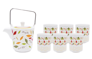 Teapot and 6 Mugs Set, Leaves
