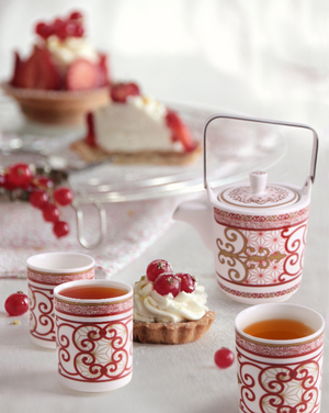 Porcelain teapot with 6 mugs and an infuser