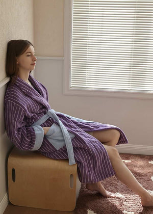 Ultra Soft Dopamine Stripe Bathrobe - 100% Organic Long-stapled Cotton
