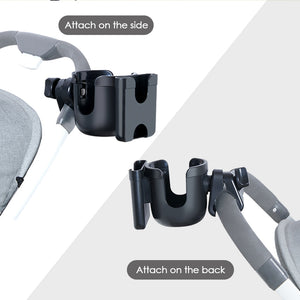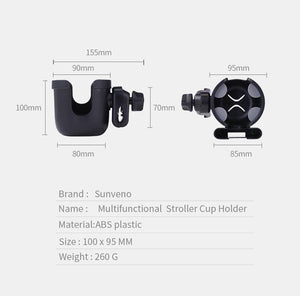 Elevate your strolling experience with our versatile 2-in-1 Stroller Cup Holder and Phone Holder. Its 360-degree design fits strollers, wheelchairs, and bicycles, securing bottles and your phone simultaneously. Enjoy slip-free convenience with soft silicone padding, and adjust to any angle with the flexible clamp. Crafted from safe, eco-friendly ABS plastic and non-slip rubber for your peace of mind.