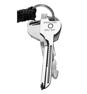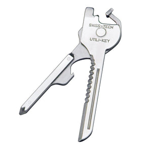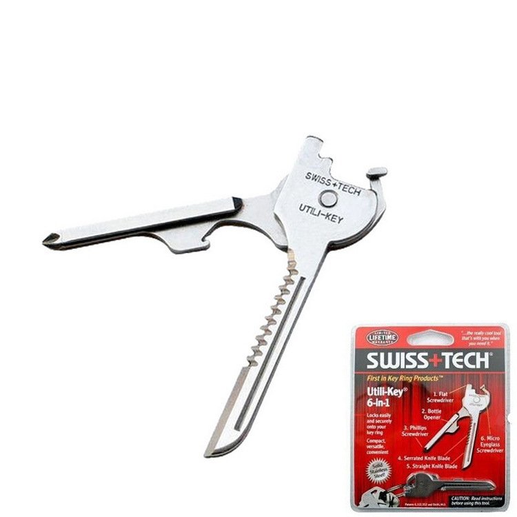 The Utili-Key 6-in-1 multi-tool is lightest and most compact multi-use tool ever developed. This ultra-light, durable and precision crafted 6-in-1 mini-tool has a straight knife blade and a serrated cutting surface, a flat screwdriver, a Phillips screwdriver, a micro-sized screwdriver, and a bottle opener, and weighs in at an amazing 0.5 oz.