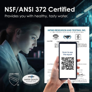 There is a 6-stage filtration system inside the dispenser, comprising an RO membrane and a UV sterilizer light. The system can effectively reduce over 1,000 impurities, including PFAS, fluoride, lead, chromium, arsenic, iron, radium, calcium, nitrate, chloride, and large particles. NOTE: This data is from a third-party lab.